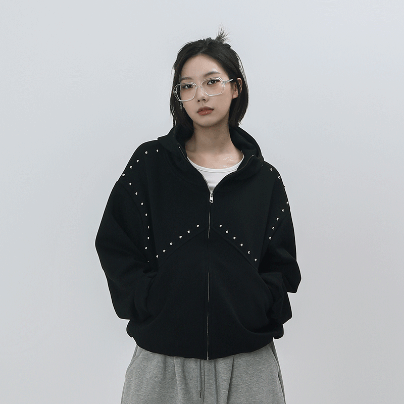 영크 스터드 하이넥 후드집업